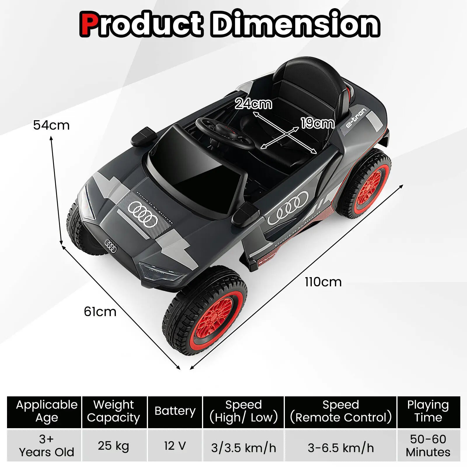 The Audi Limited Edition Kids Ride-On brings premium German engineering and racing heritage to your child's playtime. Designed with authentic Audi E-Tron styling, sleek aerodynamic lines, and collector-grade features, this electric ride-on delivers a thrilling driving experience that captures the essence of Audi's performance legacy.